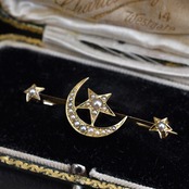 ヴィクトリア時代1880年頃のイギリスのアンティーク、クレセントムーンのブローチです。