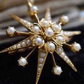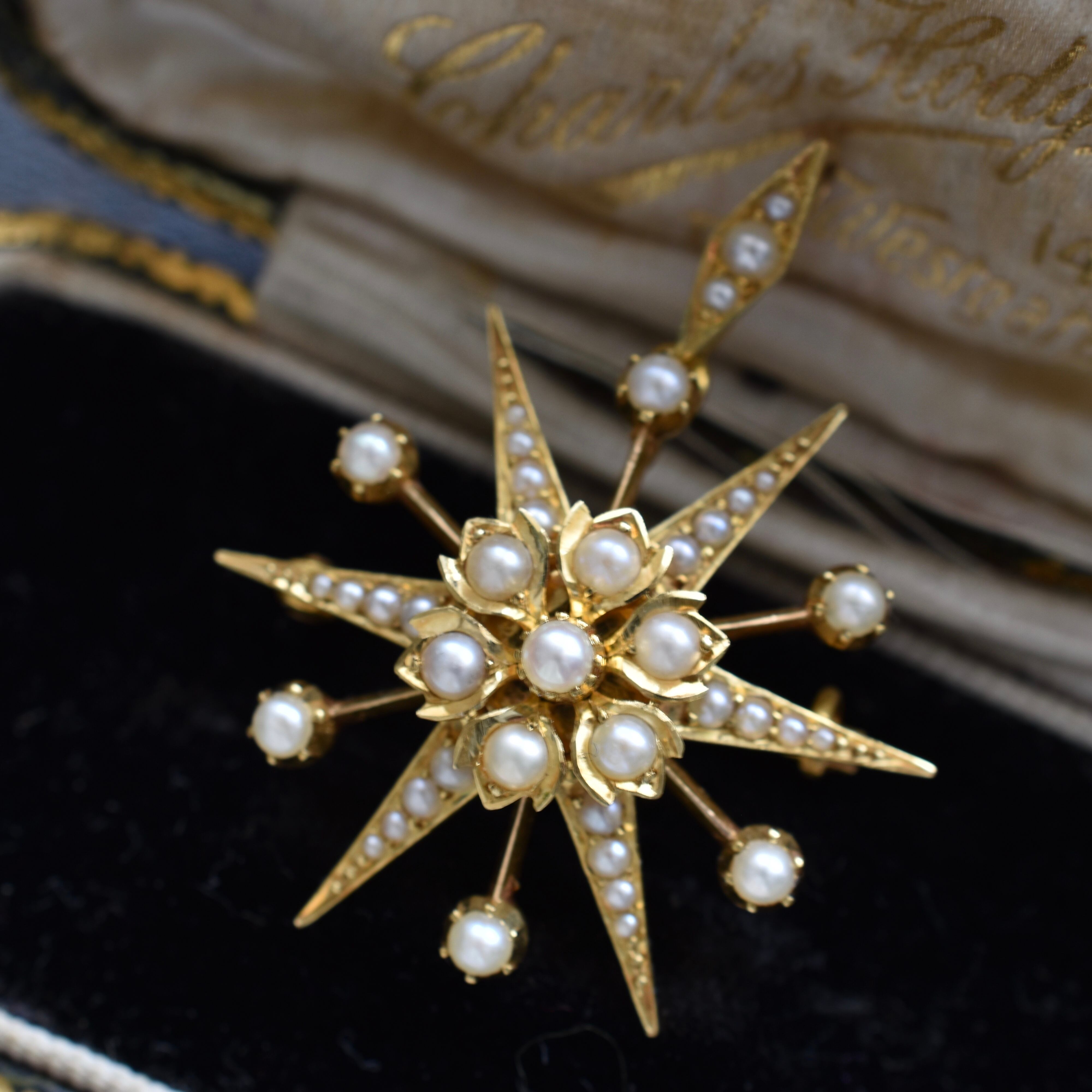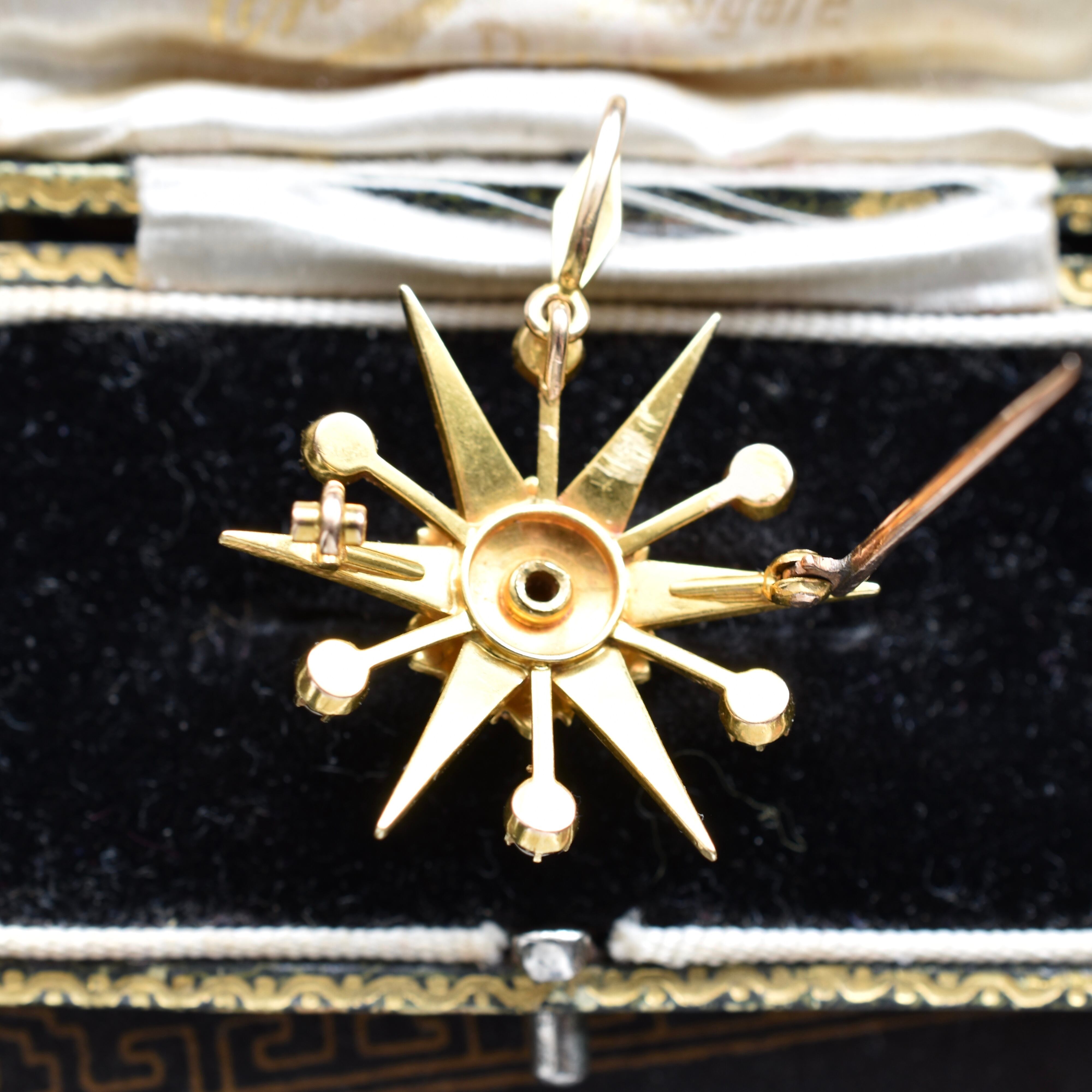 英国アンティーク 1880年 ヴィクトリアン K15 天然シードパールのお花と星のペンダントブローチ