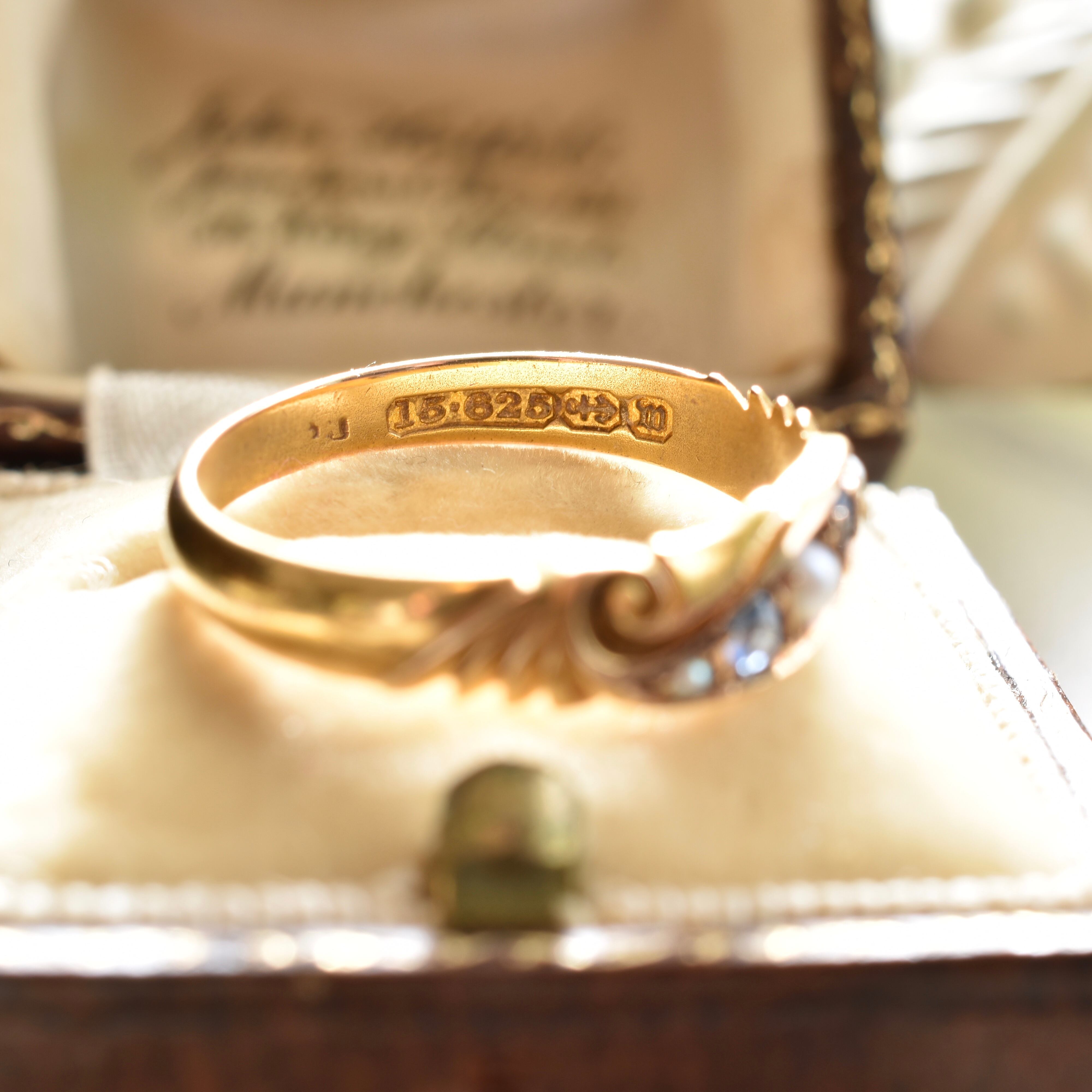 ヴィクトリアン時代のアンティークリング、オリジナルシャンクに刻印もしっかり残っています。