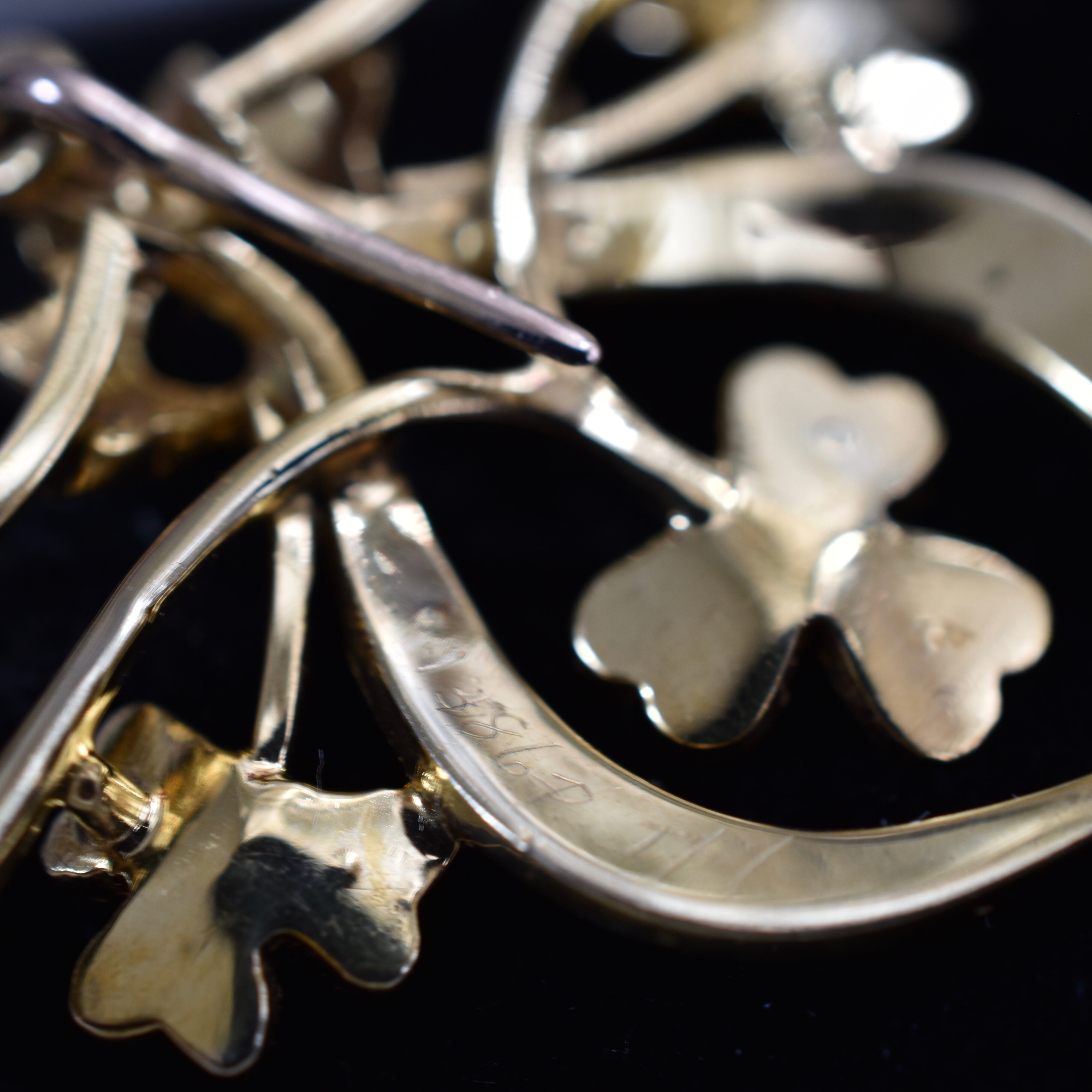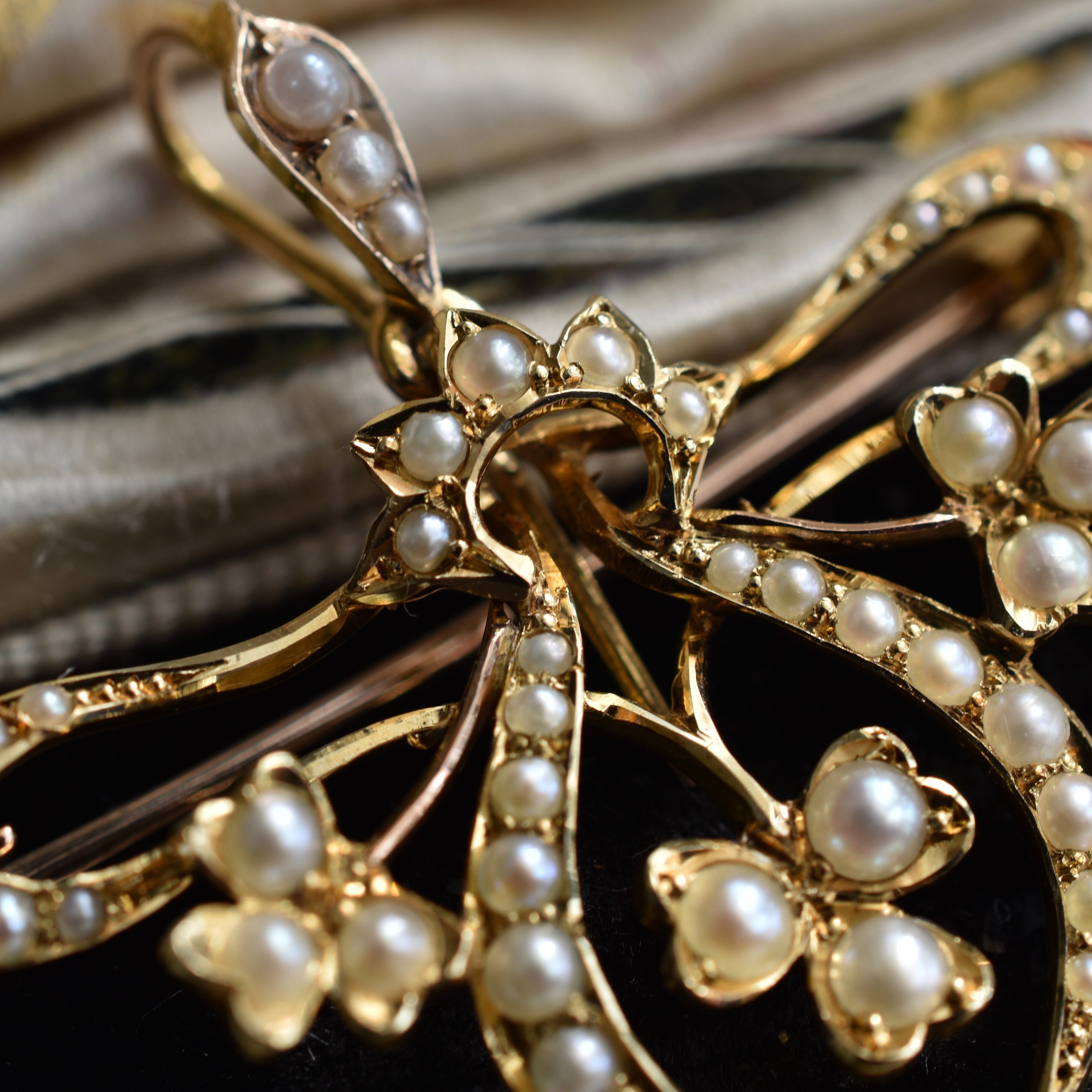 英国アンティーク 19世期アールヌーヴォー K15 シードパールのペンダントブローチ