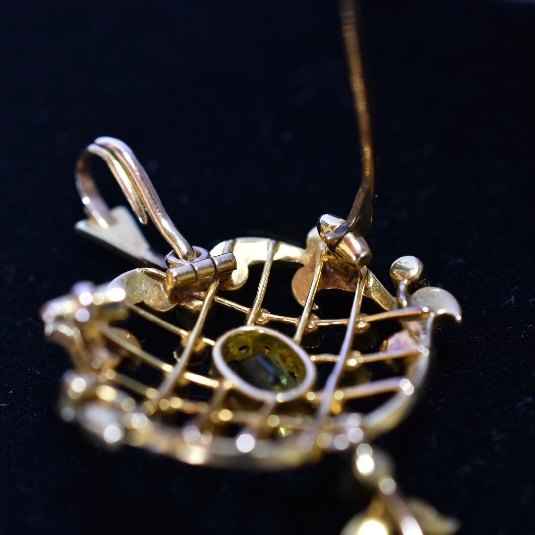 英国アンティーク 1880年 ヴィクトリアン K15 シードパールとペリドットのペンダントブローチ
