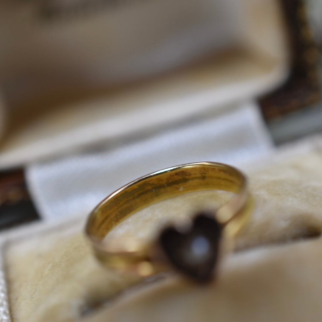 英国ヴィクトリアン時代のアンティーク、シードパールのハートが可愛いらしいベビーリングになります。