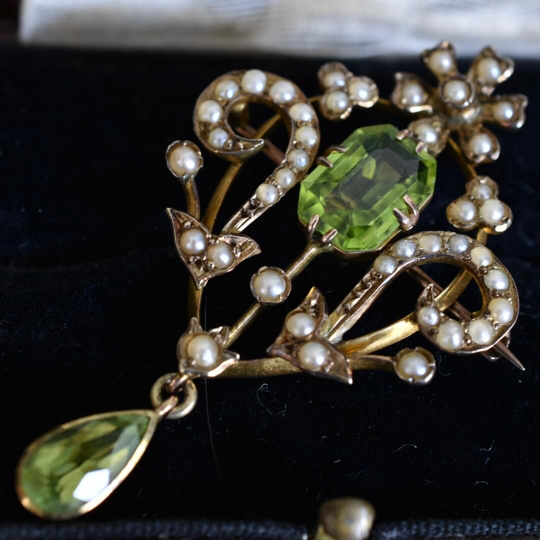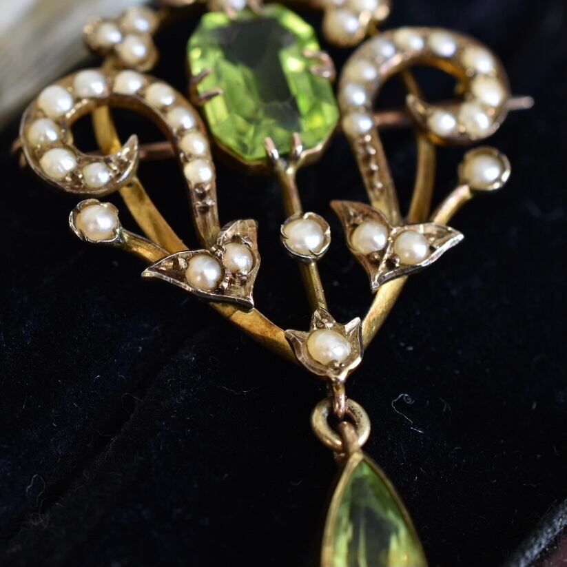 英国アンティーク 1890年ヴィクトリアン K9 シードパールとペリドットのブローチペンダント
