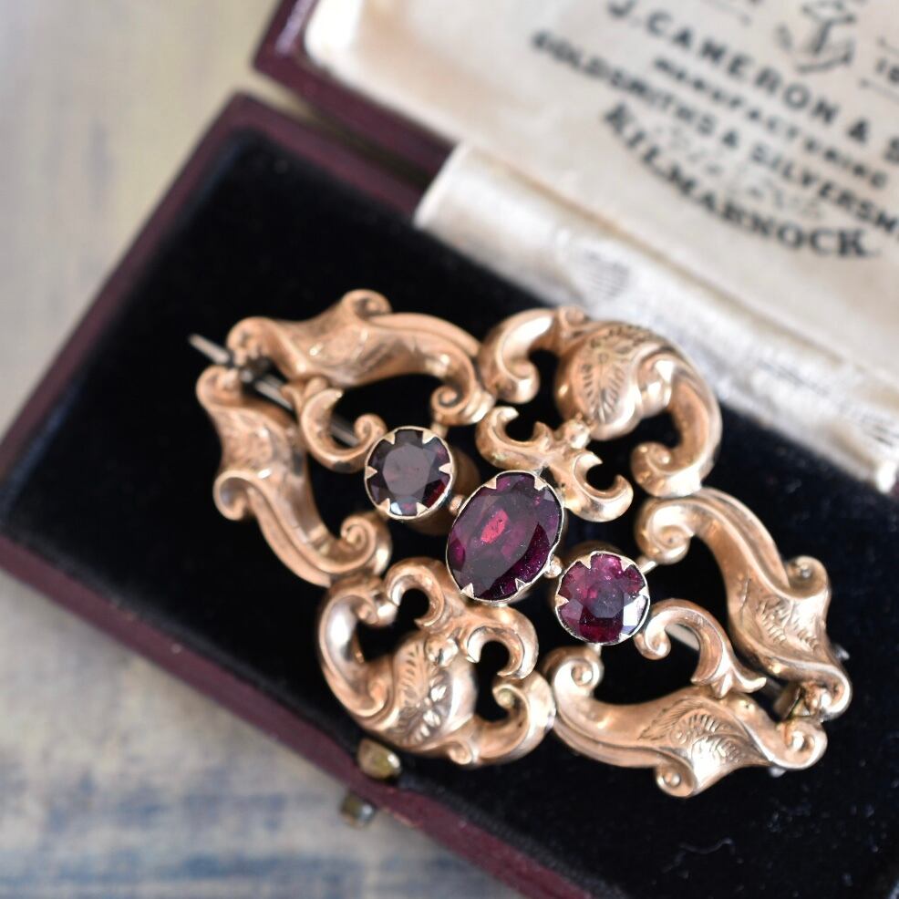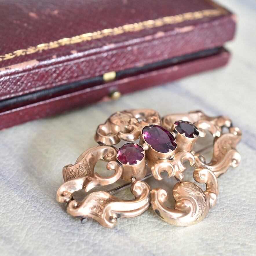英国アンティーク 1890年 ヴィクトリアン K9ローズゴールド アルマンディンガーネットのブローチ