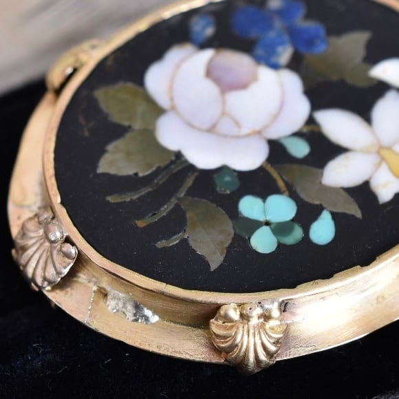 19世紀ヴィクトリアン時代にイタリアからイギリスに輸入されたピエトラドゥーラのアンティークブローチになります。