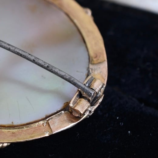 6つの貝が装飾された外枠がまるで額縁のようで、絵画を思わせるようなブローチです。