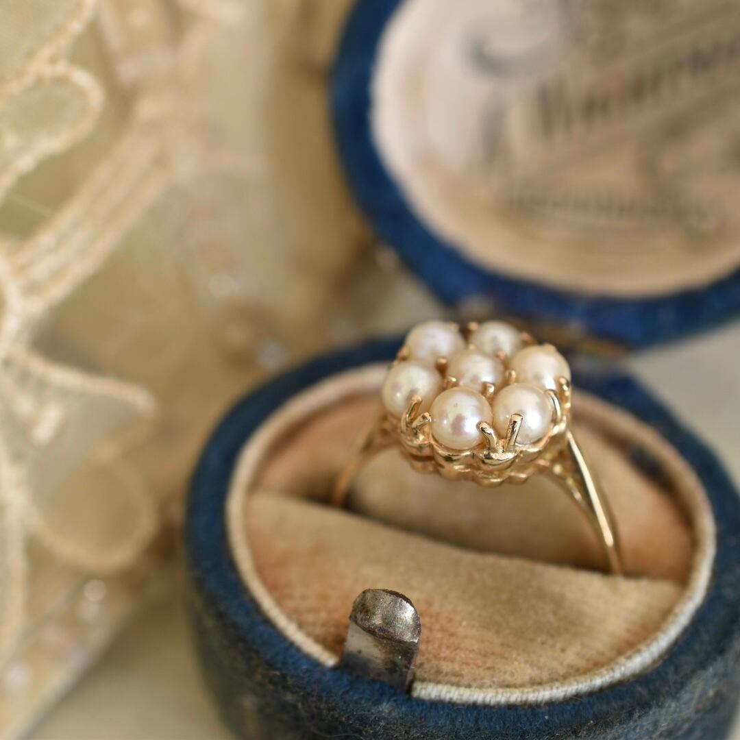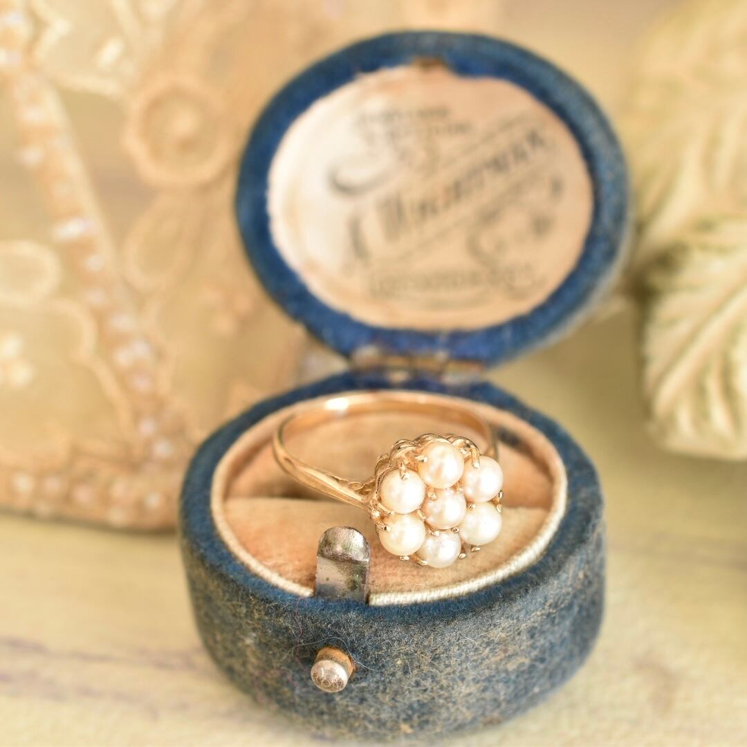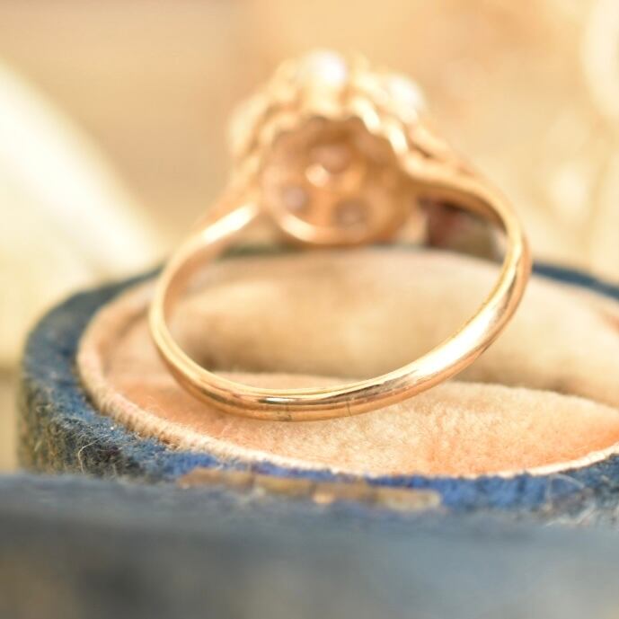 英国アンティーク 20世紀初頭 エドワード朝時代 K9 天然パールのクラスターデイジーリング