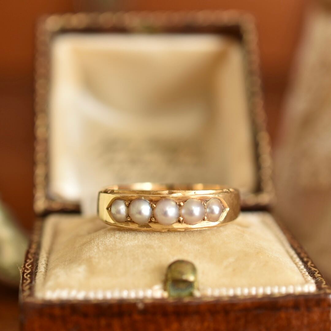 英国アンティーク ヴィクトリアン 1880年 K18 天然シードパールのリング ソーティングメモ付 刻印あり