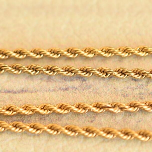 線状の金を一本一本ねじり合わせて作る工程には高い技術力が必要ですので、こちらのチェーンは熟練の職人が手掛けたものと伺えます。