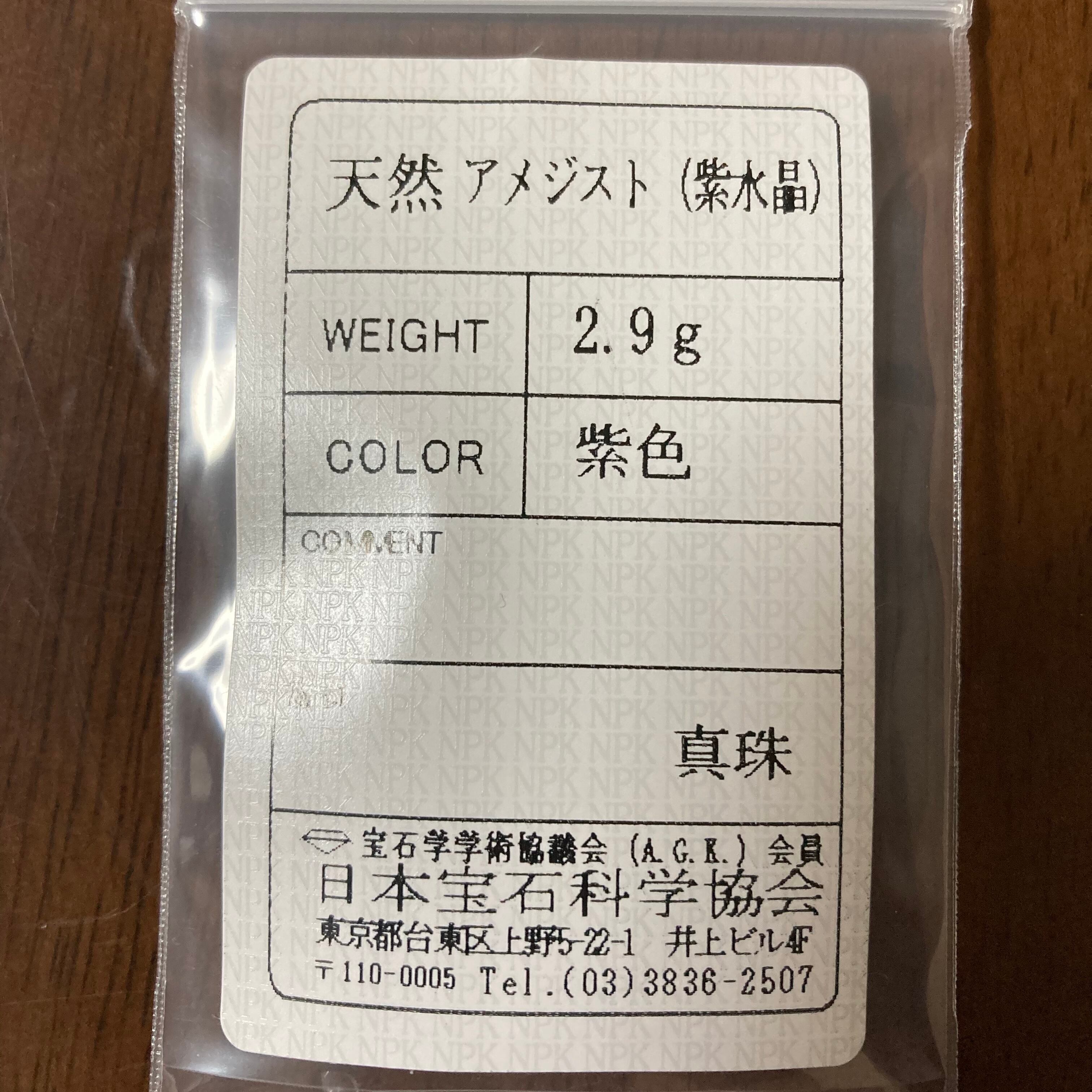 天然アメジスト、天然パールにつきましては、専門機関にて鑑別済みです。