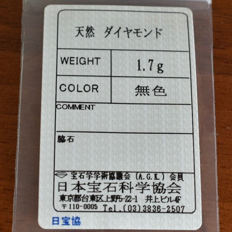 天然ダイヤモンドにつきましては、専門機関にて鑑別済みです。