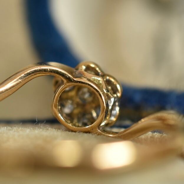 英国アンティーク アールデコ 天然ダイヤモンドのデイジーリング12-13号