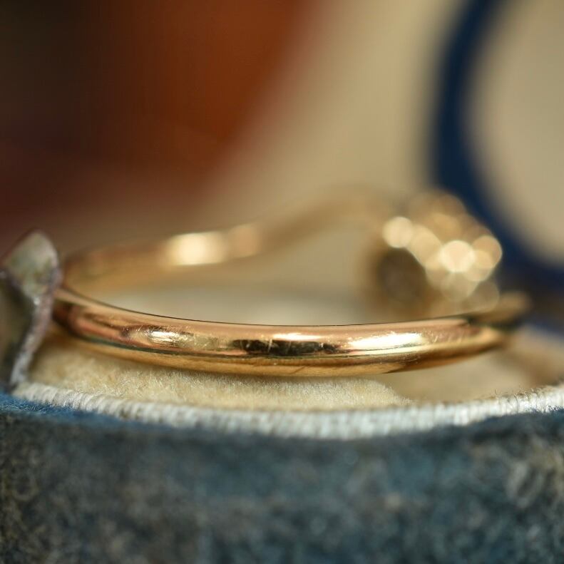 ダイヤモンドの周囲はプラチナ、シャンクの地金は18金になります。