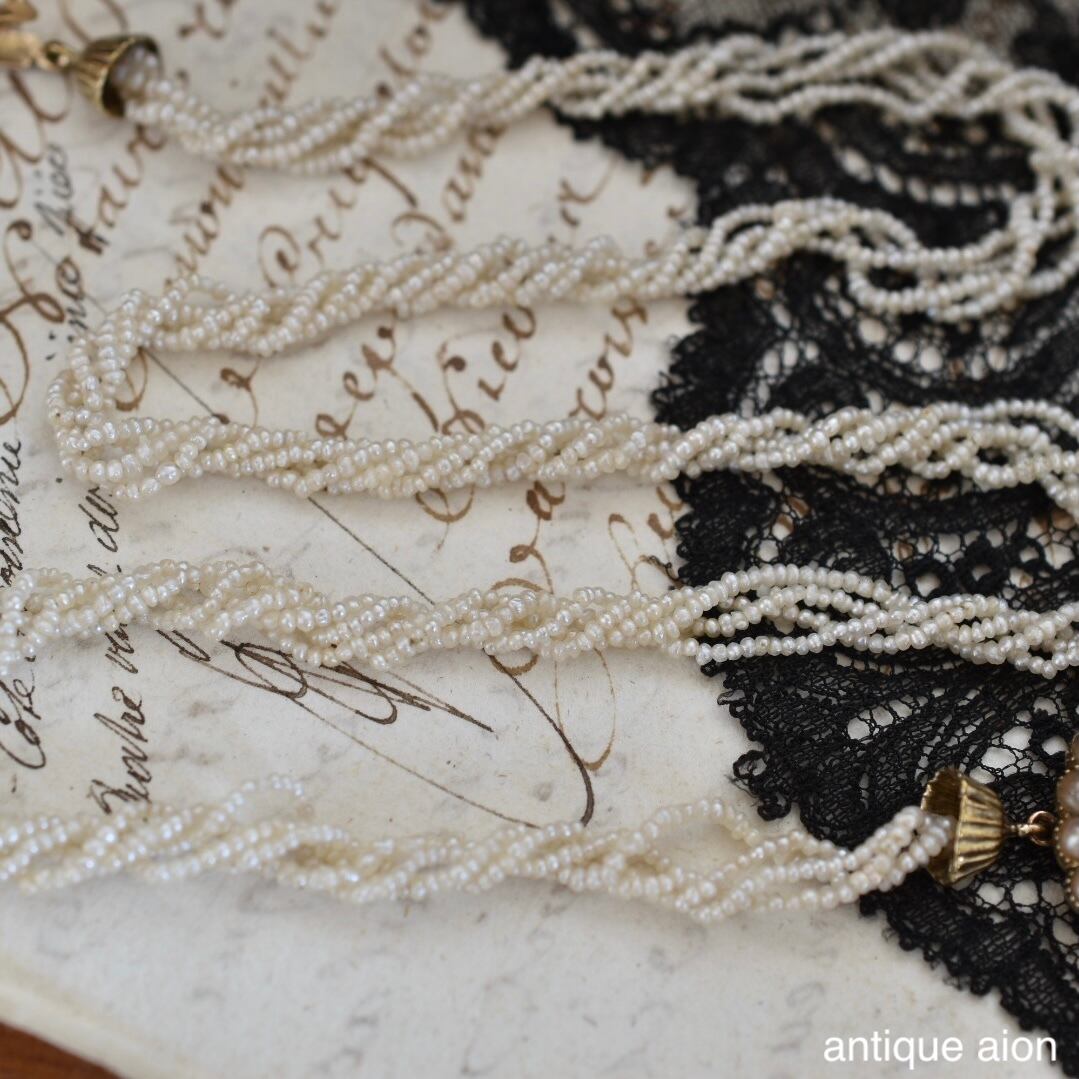 現代では希少な小粒のシードパールの上品な煌めきにうっとりとしてしまうお品です。