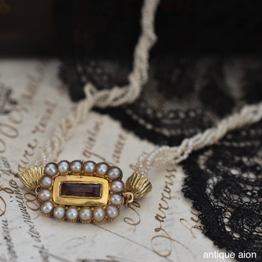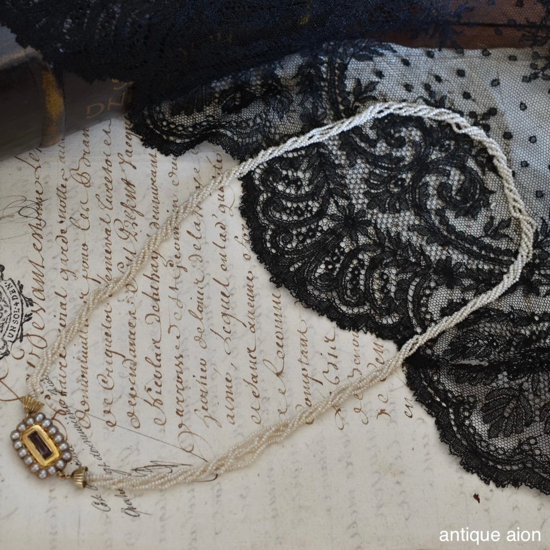 英国アンティーク1820年 ジョージ王朝時代 天然アメジストと天然パールの四連ネックレス K18クラスプ