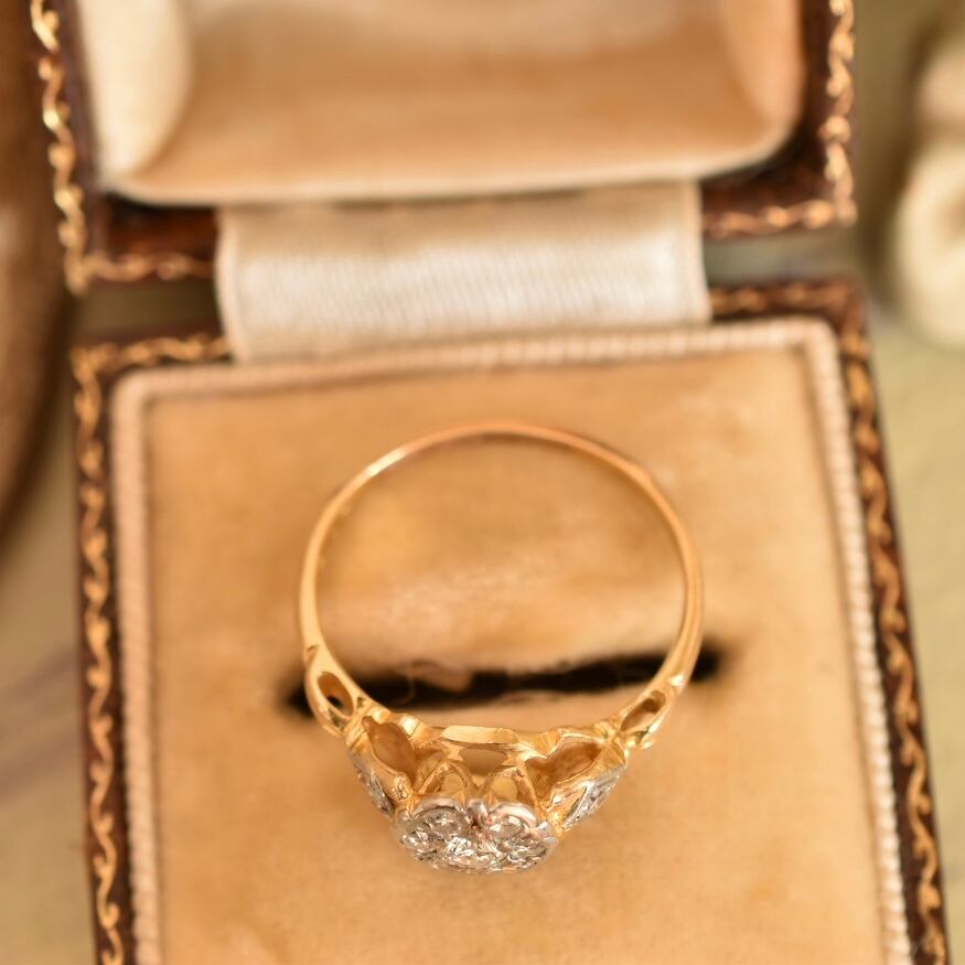 英国アンティーク 20世紀初頭 エドワーディアン 天然ダイヤモンドのクラスターリング 8-9号