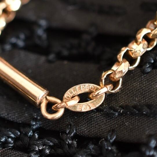 英国アンティーク 1890年 ヴィクトリアン 9金ロールドゴールド(金メッキ) バレルクラスプ ベルチャーリンクネックレスチェーン 40.5cm
