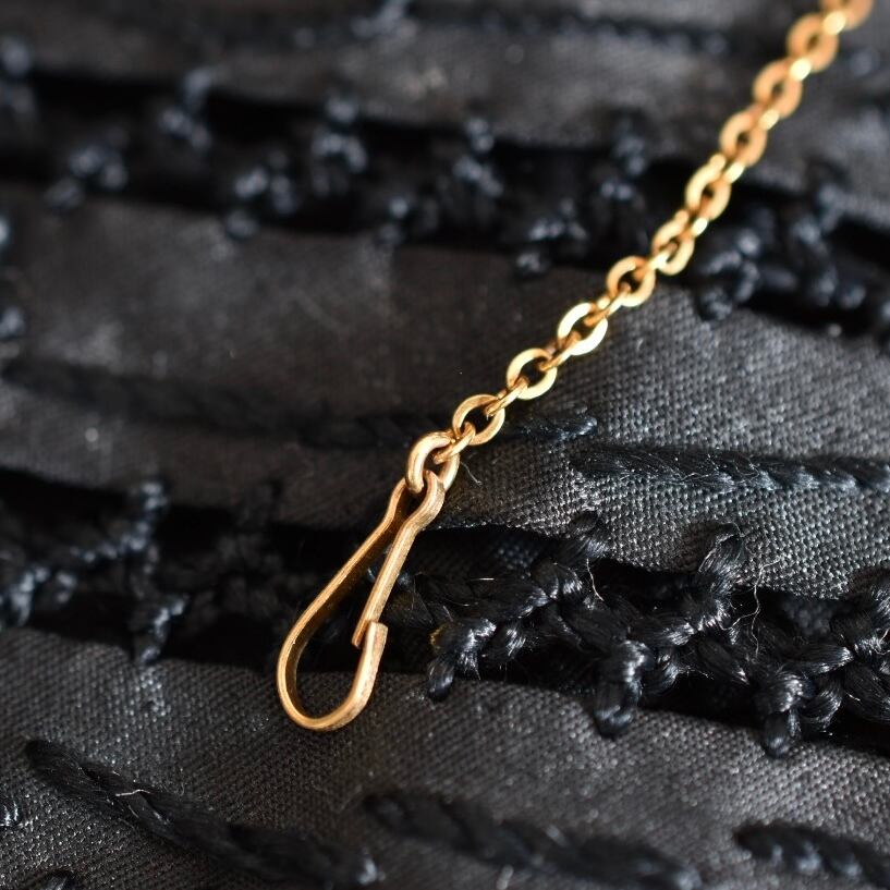 小さな楕円形のチェーンの地金は9金、経年によりしっとりとした落ち着いた風合いがクラシカルです。