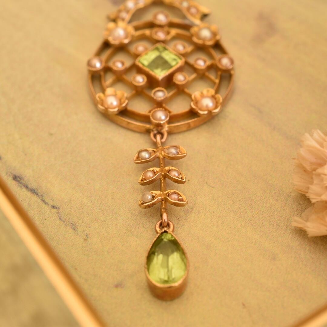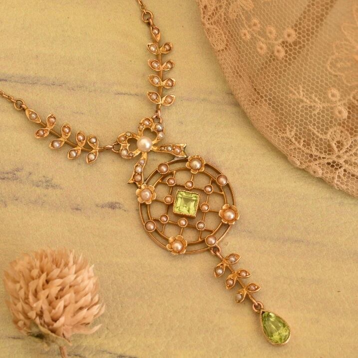 英国アンティーク 1890年頃 ヴィクトリアン K9 天然ペリドットと天然シードパールのネックレス