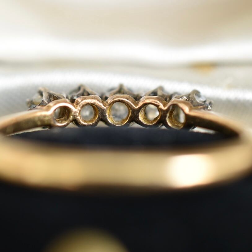 英国アンティーク 1910年 エドワーディアン 18金 天然ダイヤモンドのファイブストーンリング 16号