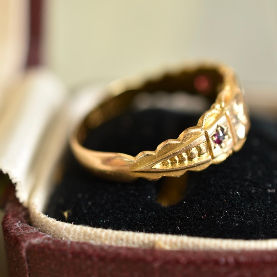 天然ルビーと天然ダイヤモンドが嵌め込まれたヴィクトリアンリング。
