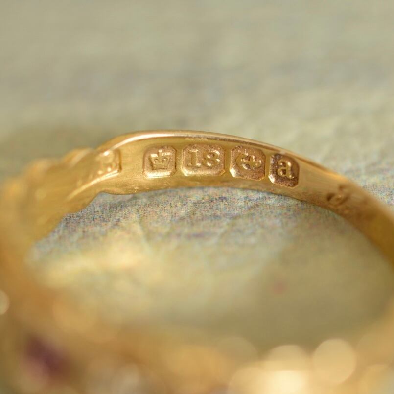 英国アンティーク 1900年 ヴィクトリアン 18金 天然ルビーと天然ダイヤモンドのリング