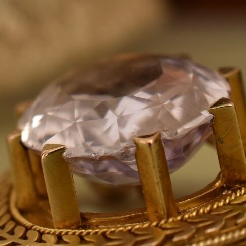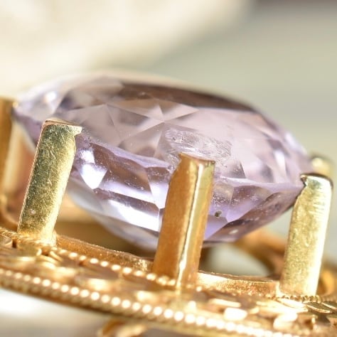 下から立ち上がった爪で台座にセッティングされており、どの角度から見てもキラキラと、とても美しい淡い紫の輝きを見せてくれます。