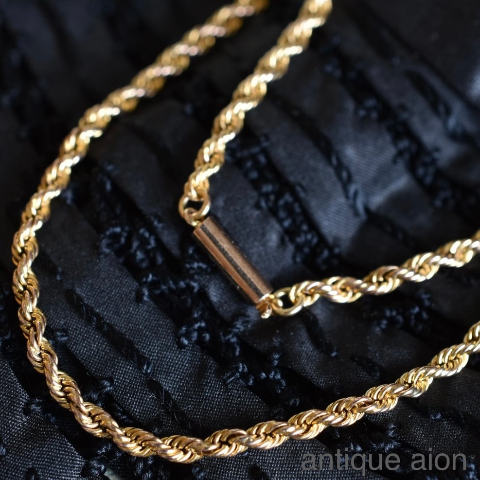 『ご専用』英国アンティーク 1880年ヴィクトリアン 9金 バレルクラスプ ロープチェーン 44cm 7.8g