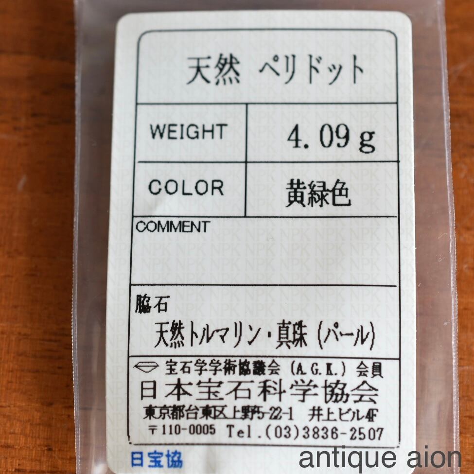 天然トルマリンと天然ペリドット、天然シードパールにつきましては、専門機関にて鑑別済みです。