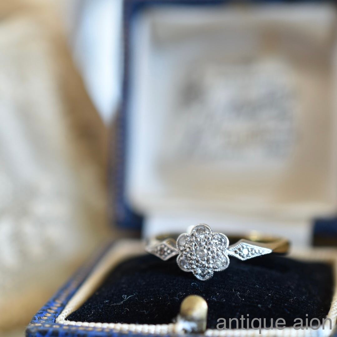 英国アンティーク 1910年 エドワーディアン 18金とプラチナ 天然ダイヤモンドのデイジークラスターリング