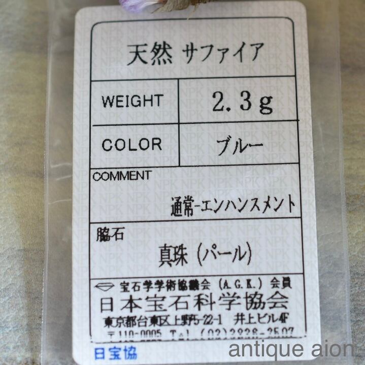 天然サファイア、天然シードパールにつきましては、専門機関にて鑑別済みです。