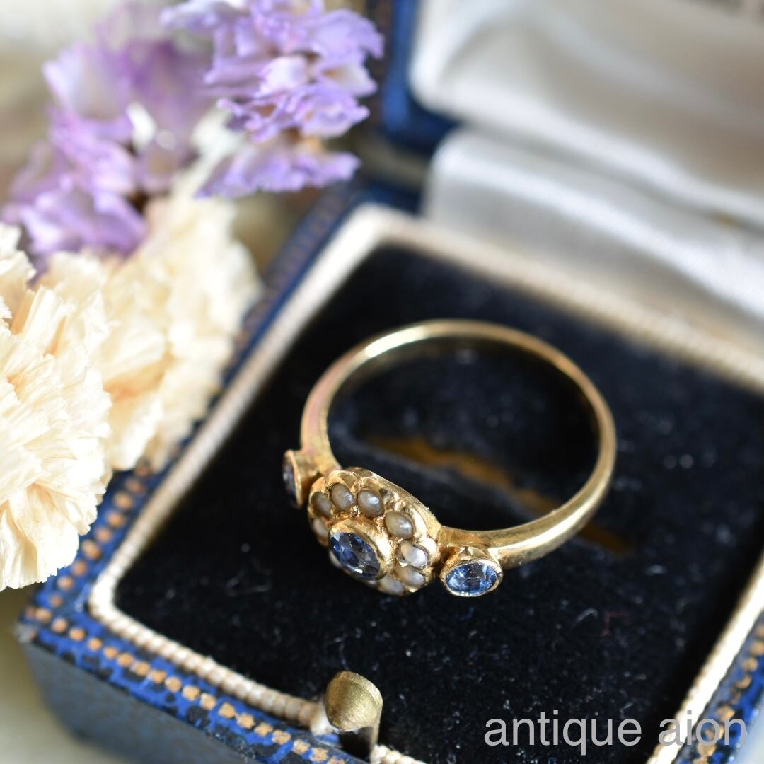 英国アンティーク 1911年 エドワード王朝時代 天然サファイアと天然パールのリング