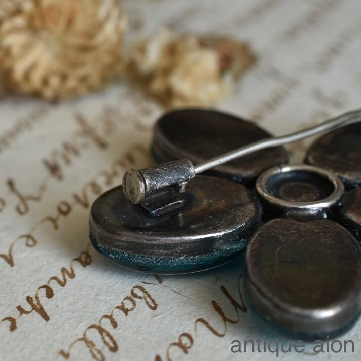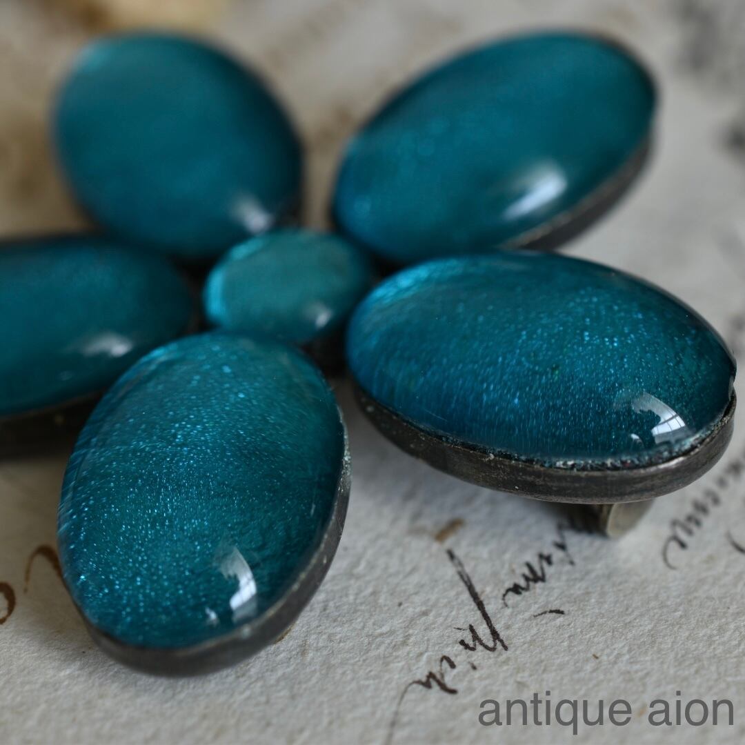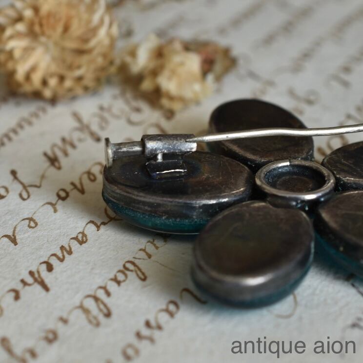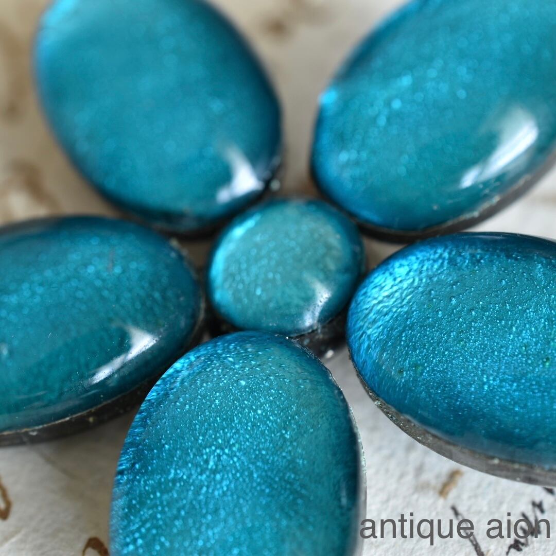 フランス ヴィンテージ 1930年 カボションブルーガラスのお花ブローチ