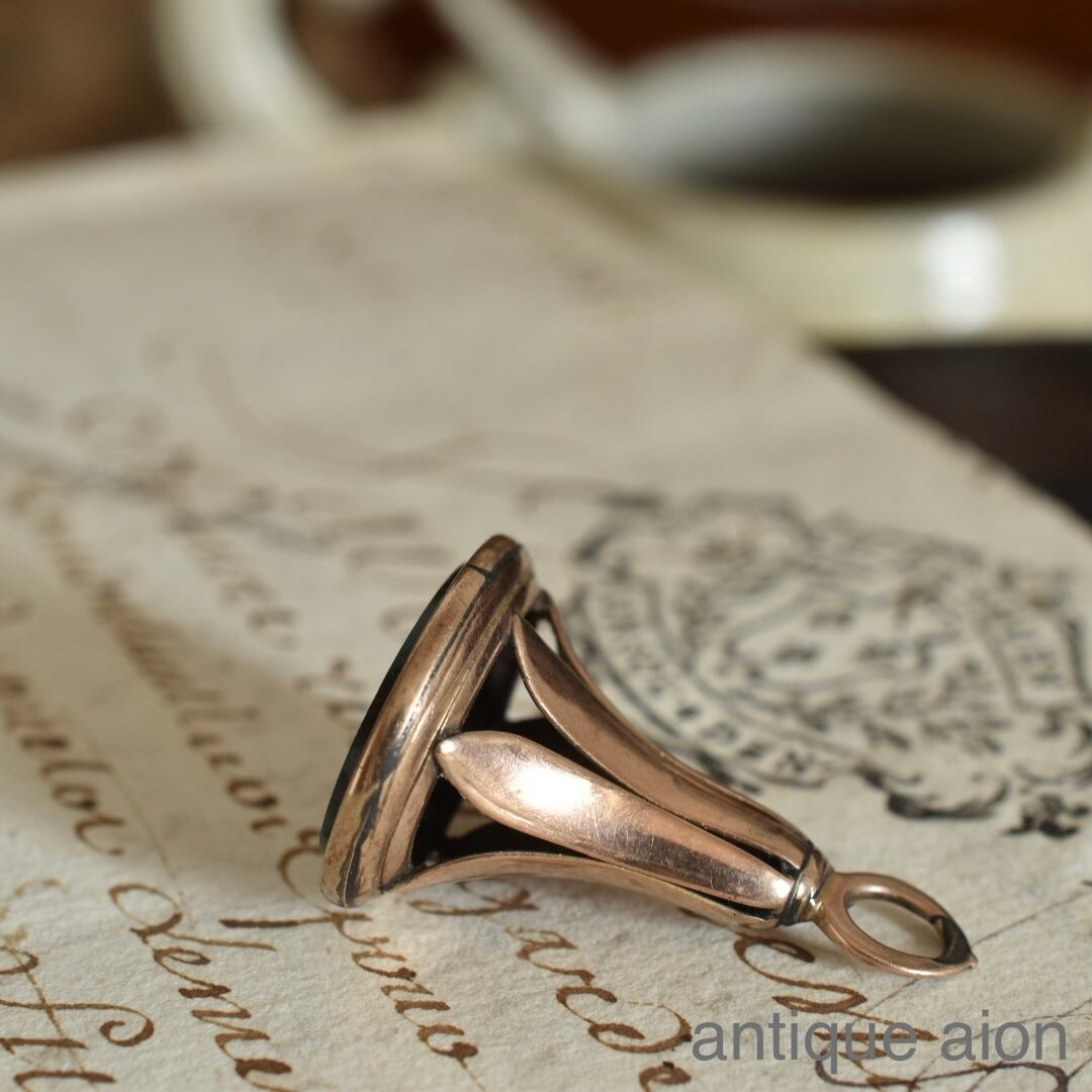 〜 英国 19世紀 9金 天然ジャスパーのインタリオ 〜