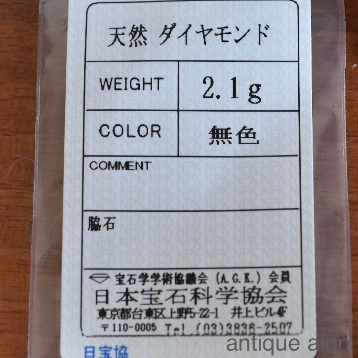 天然ダイヤモンドにつきましては、専門機関にて鑑別済みです。