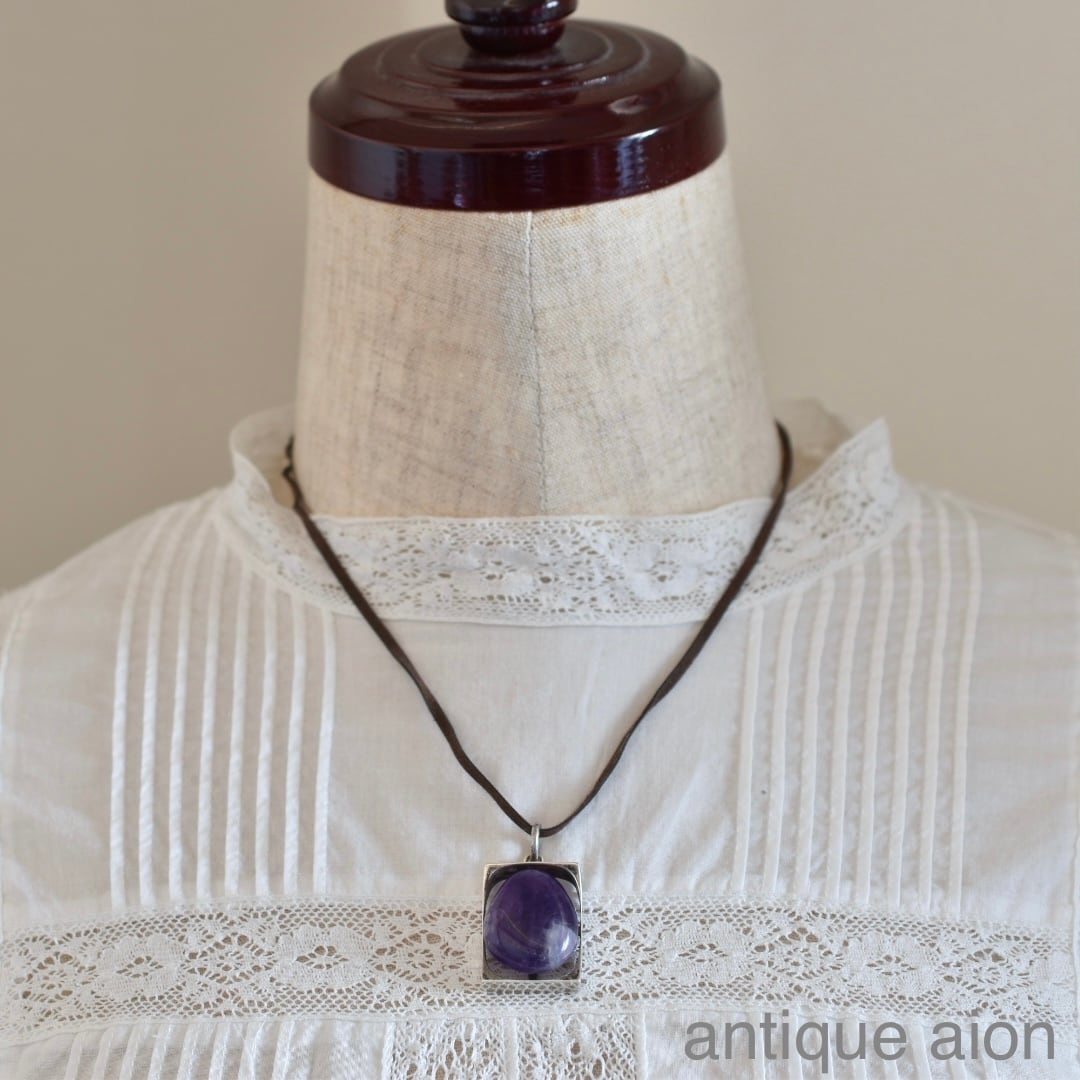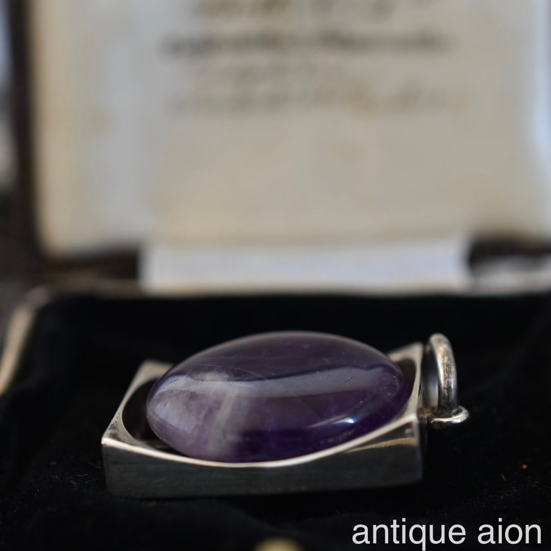 スペイン製 スターリングシルバーと大粒天然アメジストのヴィンテージペンダントトップ