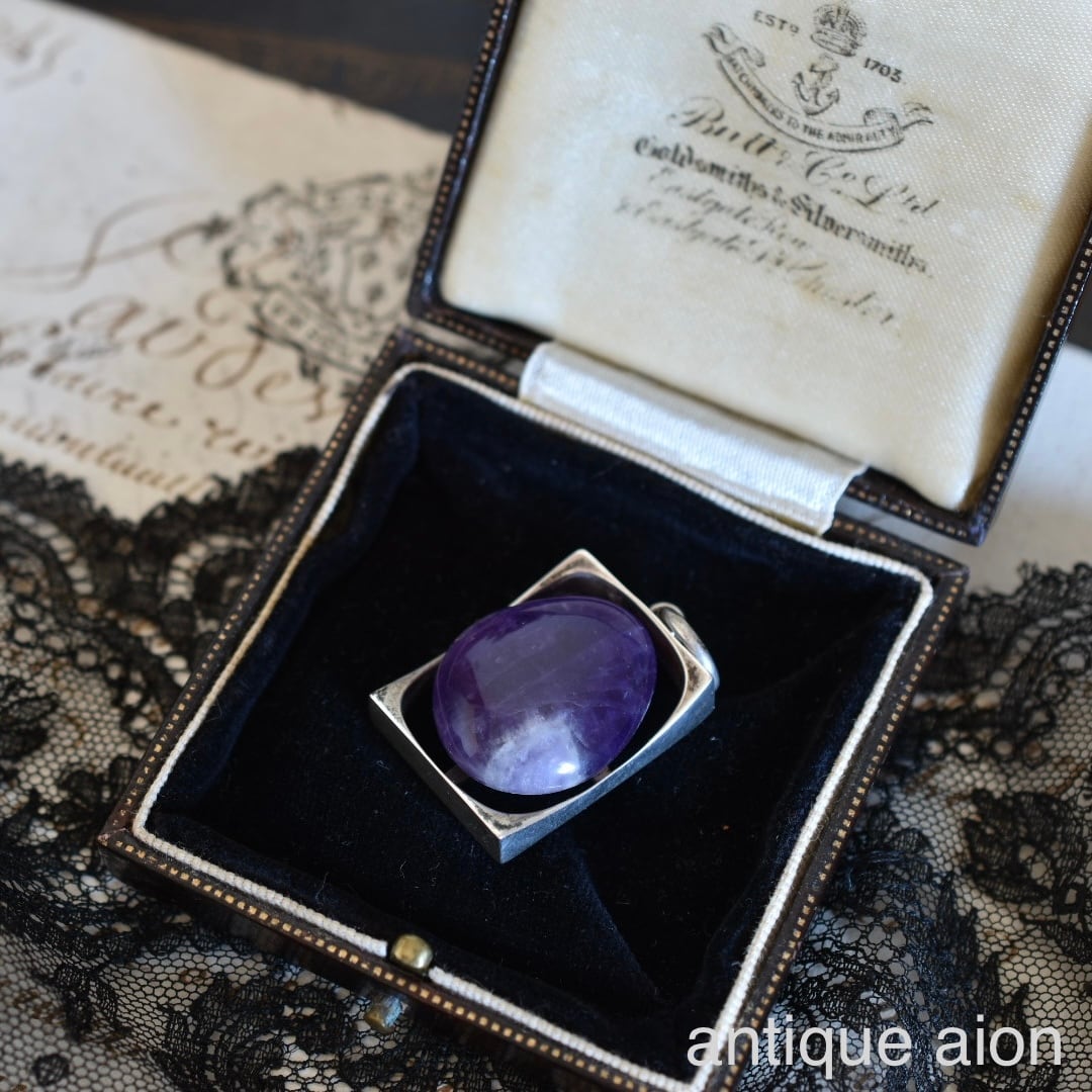 生命力みなぎるダイナミックな大粒天然アメジストがスターリングシルバーの枠に嵌め込まれたナチュラルデザインです。