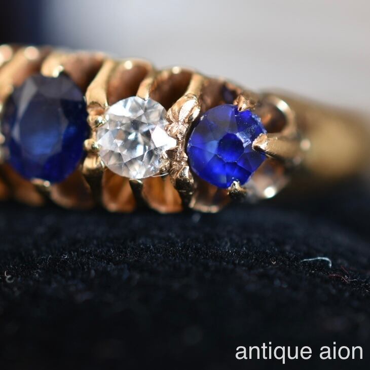 英国アンティーク 1910年頃 エドワード王朝時代 18金 天然ダイヤモンドと天然サファイアのリング