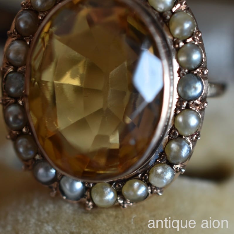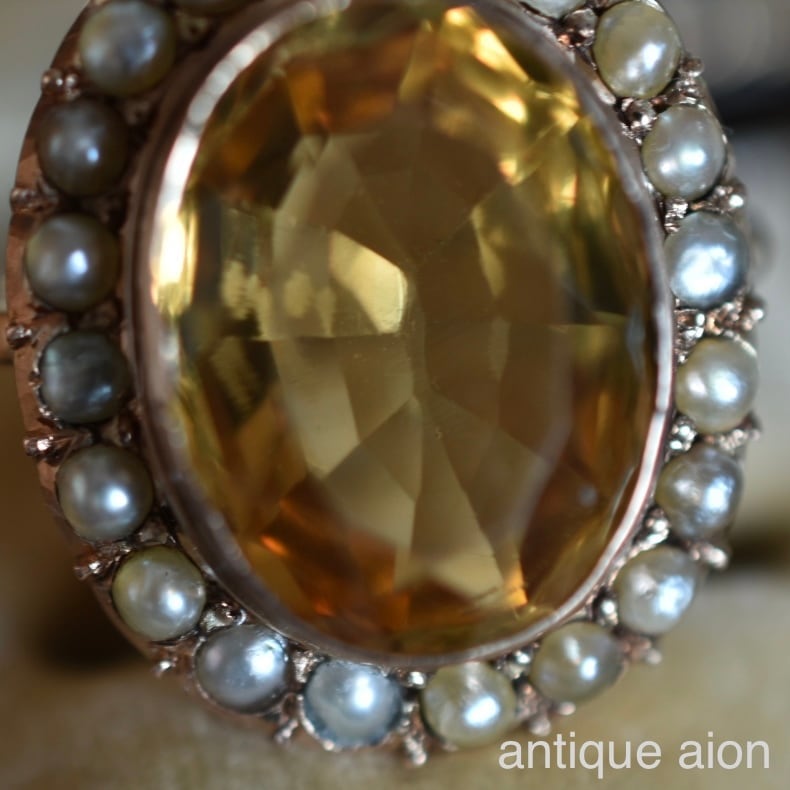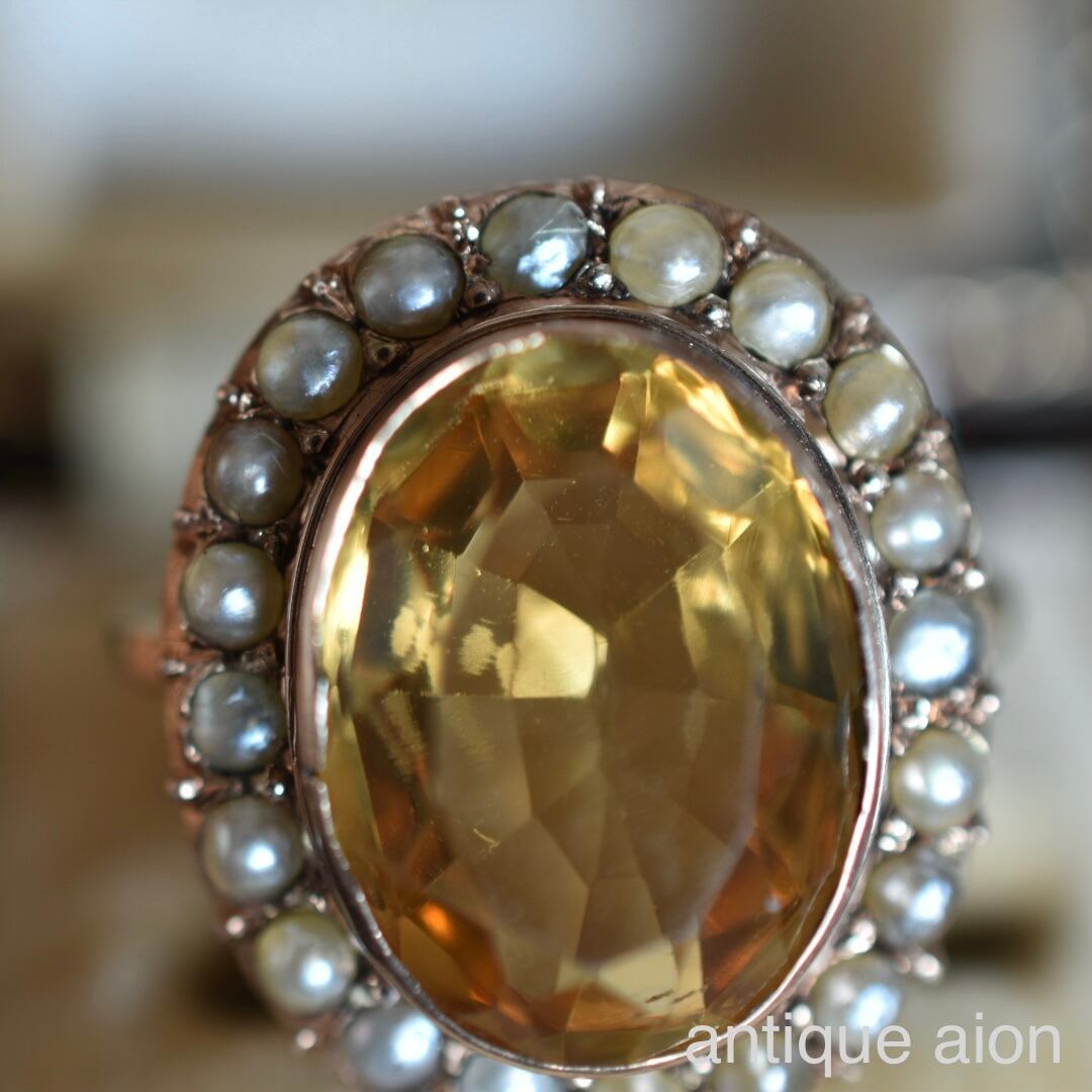 〜 イギリス 20世紀前後 天然シトリンと天然シードパールのクラスターリング〜