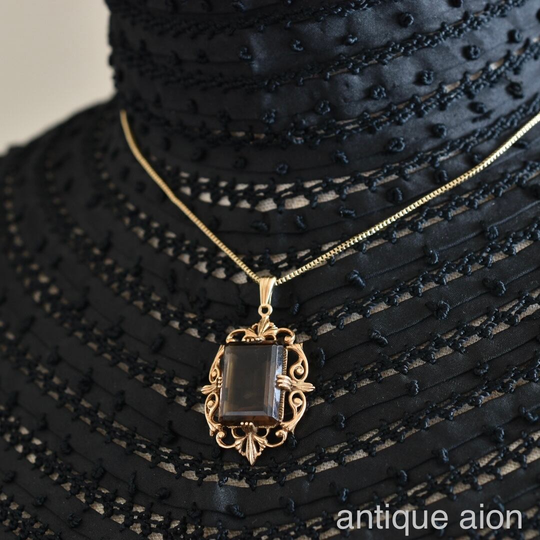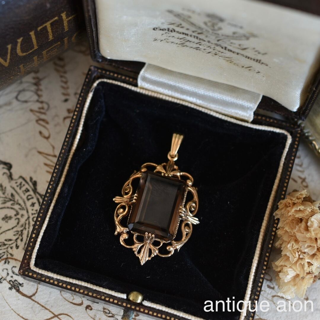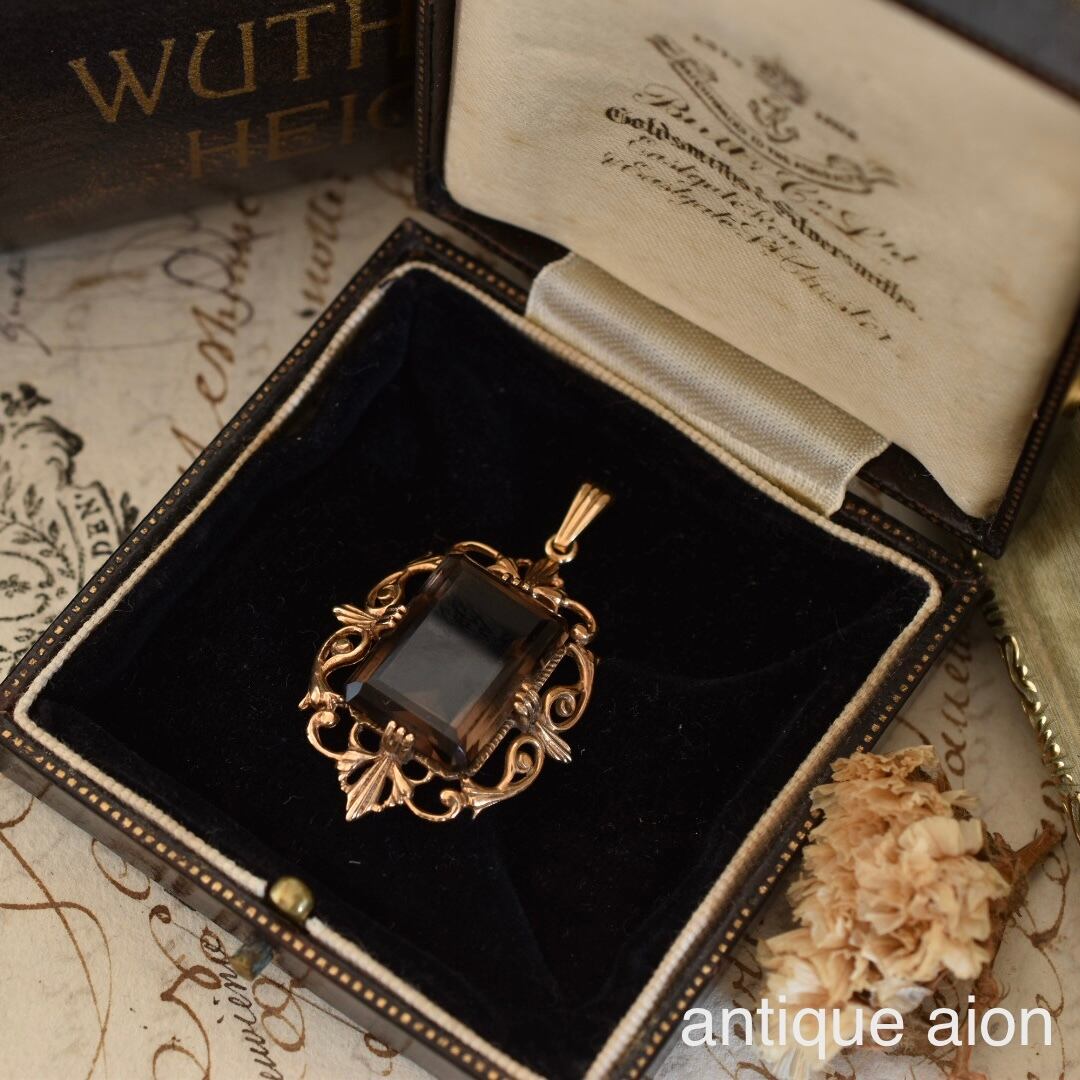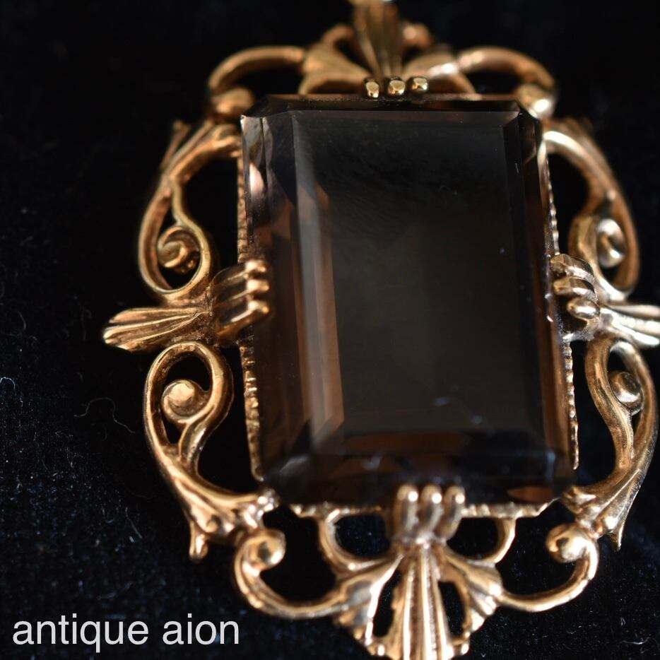 英国ヴィンテージ 1950年 9金 天然スモーキークォーツ ペンダントトップ