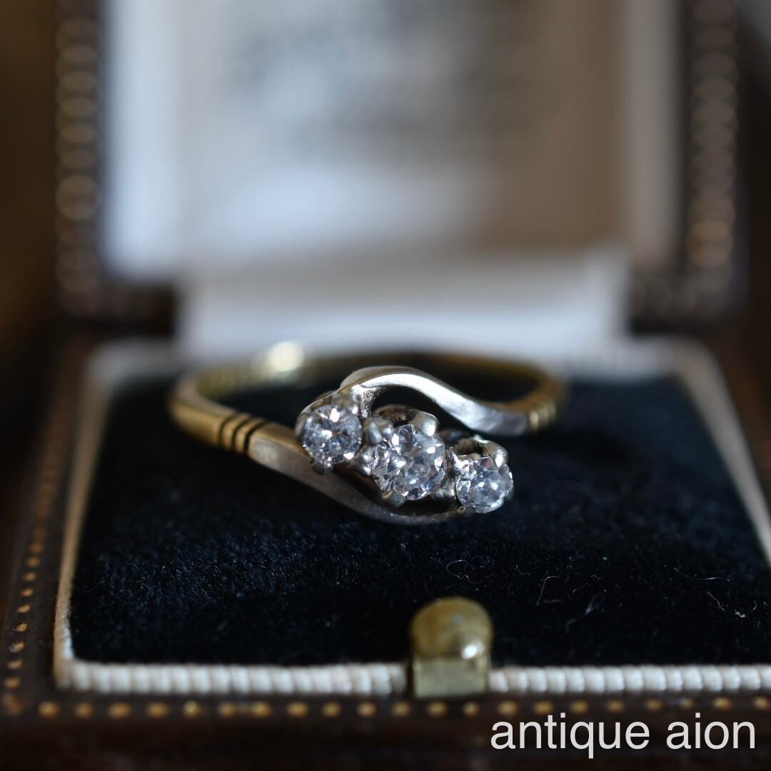 英国ヴィンテージ 1932年 アールデコ 18金&プラチナ 天然ダイヤモンドのリング