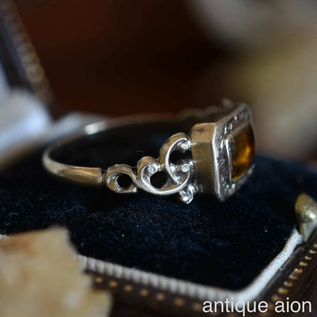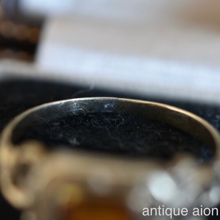 英国アンティーク 19世紀初期 ジョージアン〜ヴィクトリアン期 9金とシトリンペーストガラスのリング