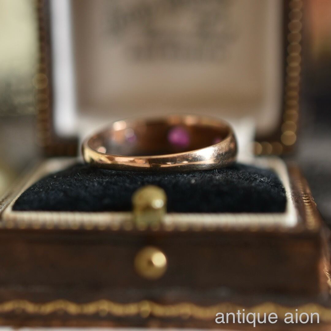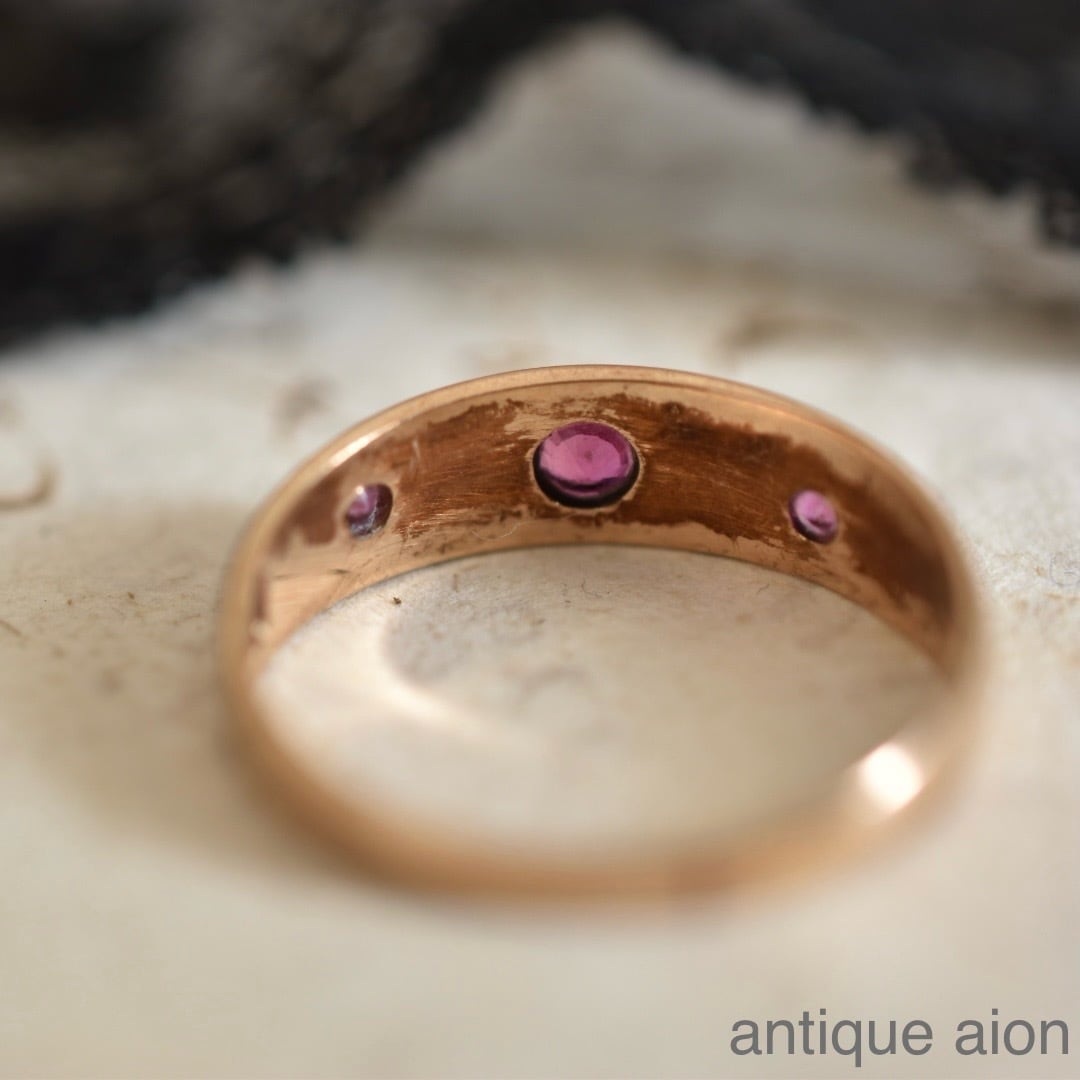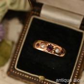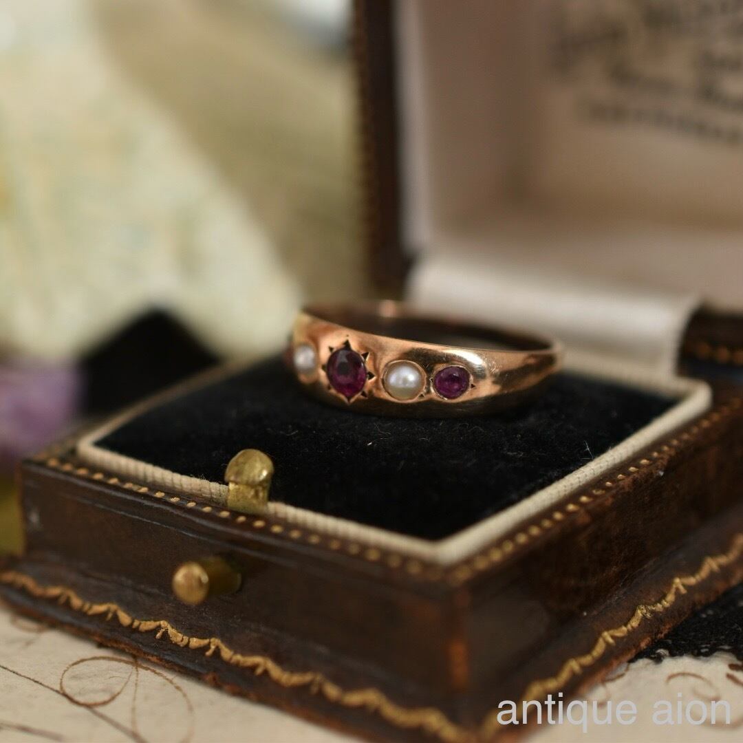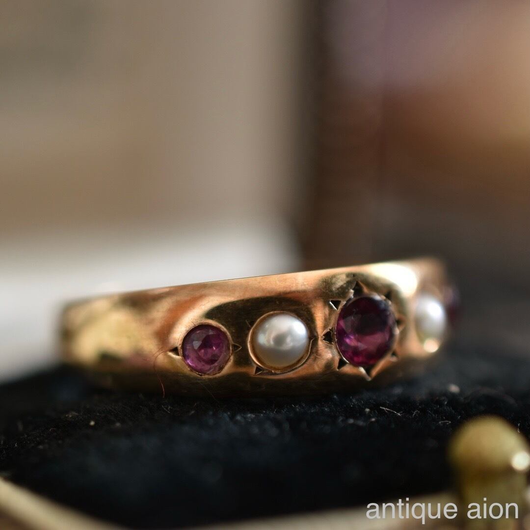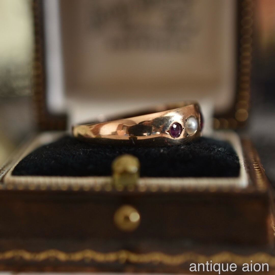 英国アンティーク 1898年 ヴィクトリア朝時代 K9 天然ルビーと天然シードパールのジプシーリング