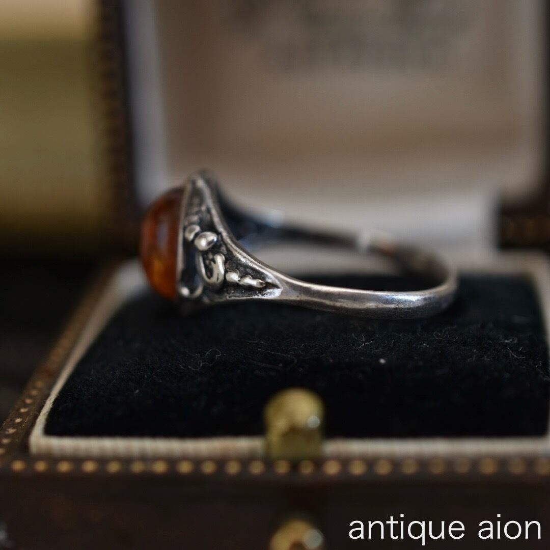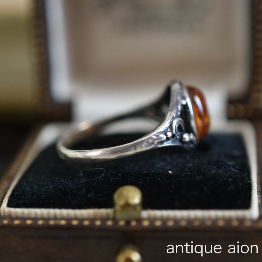 英国ヴィンテージ スターリングシルバー 天然コハクのリング 12.5号