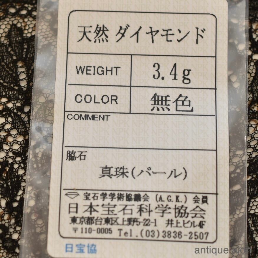 パール、ダイヤモンドはしっかりとセッティグされており、ルーペで確認すると表面に多少の小傷はあるものの、肉眼ではわからない大変良い状態です。