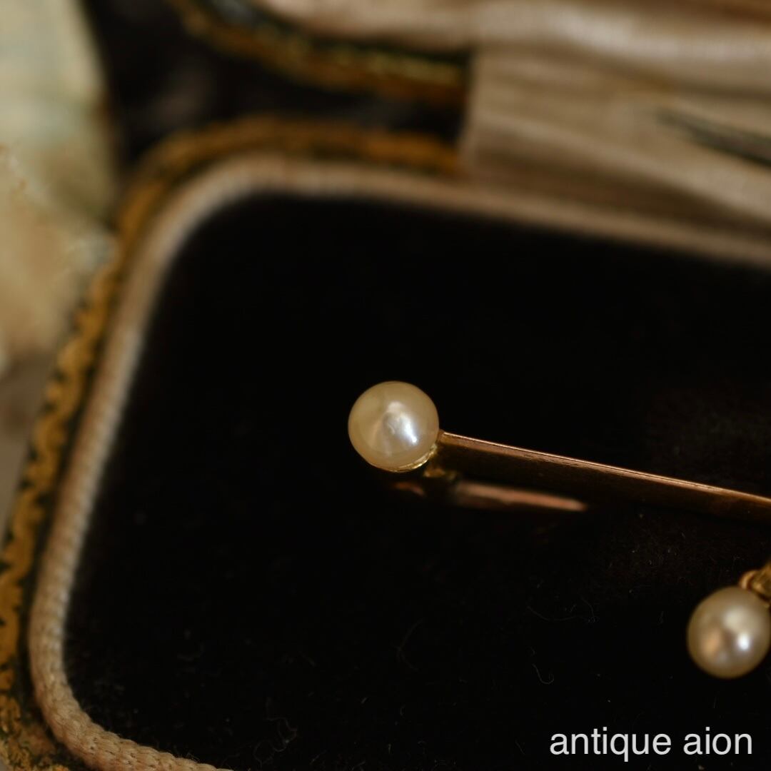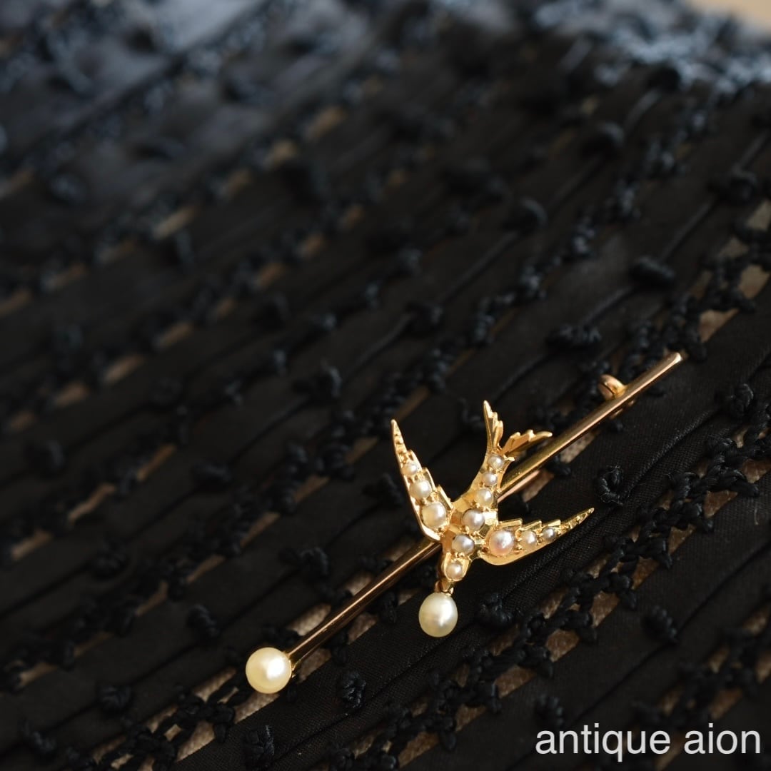 英国アンティーク 19世紀後期 ヴィクトリア朝時代 15ctゴールド 天然シードパール つばめのバーブローチ