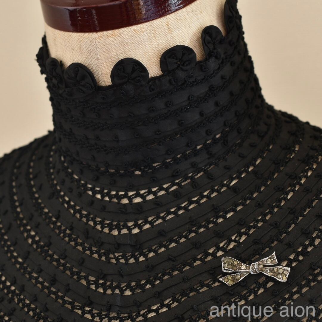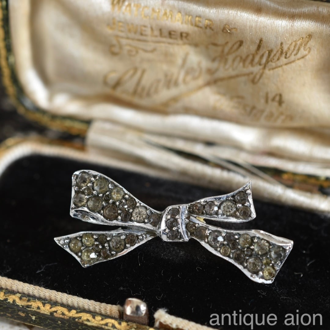 英国アンティーク アールデコ ペーストガラスとスターリングシルバーのリボンブローチ