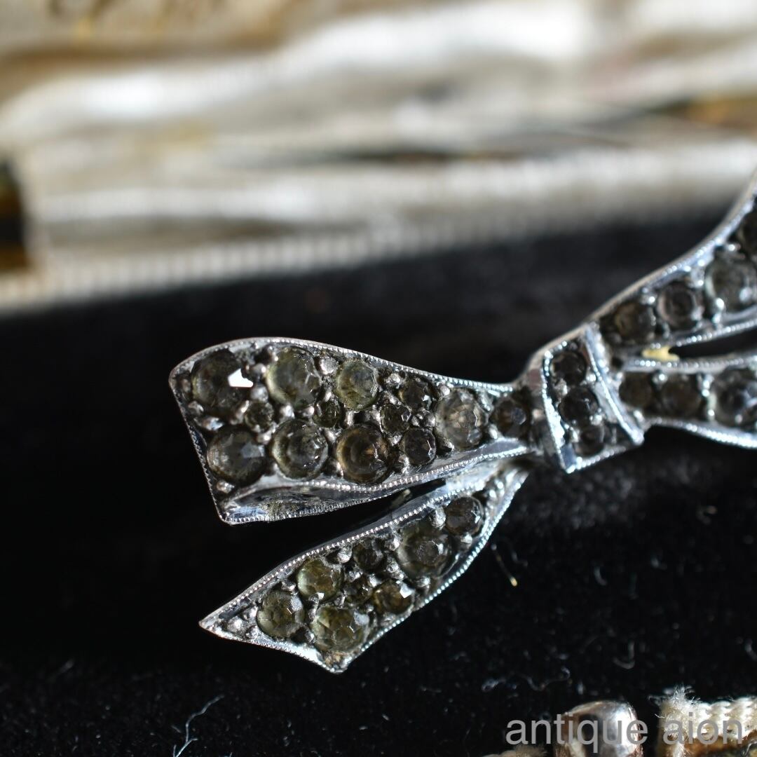 アールデコ期以降に作られたキラキラと煌めく可愛いペーストガラスのリボンブローチです。