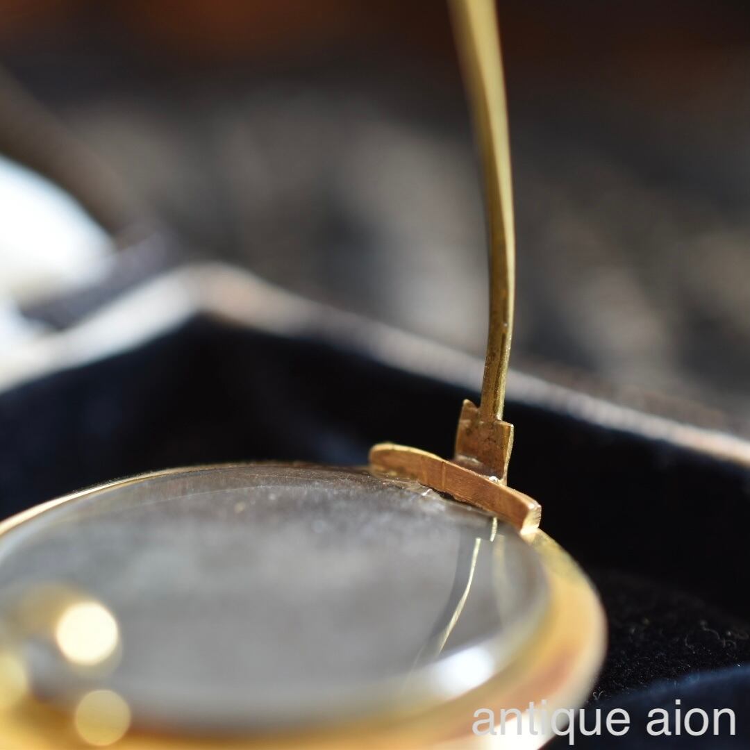経年により落ち着いた色味の15金の金枠には、中央に凹凸をつけることによってお花が浮き出ているような立体的な作りです。
