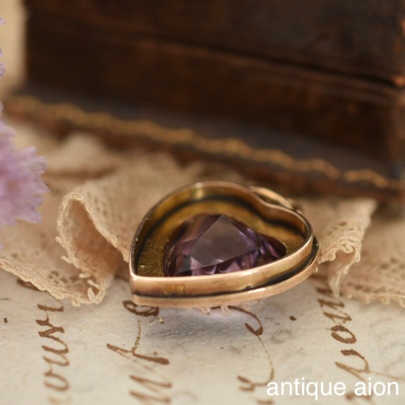 英国アンティーク 19世紀後期頃 ヴィクトリアン 9ctゴールド 天然シードパールと天然アメジスト ハートのペンダントトップ